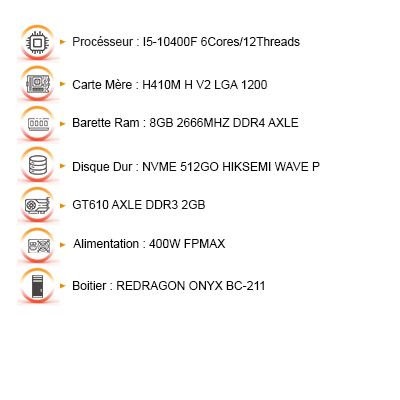 DESKTOP ONYX II I5-10400F|8GO|512GB SSD|GT610 2GB