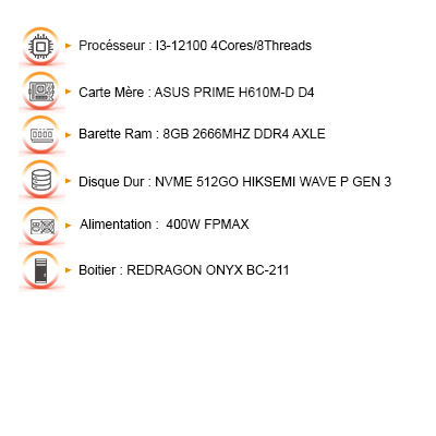 DESKTOP ONYX VI I3-12100|8GO|512GB SSD